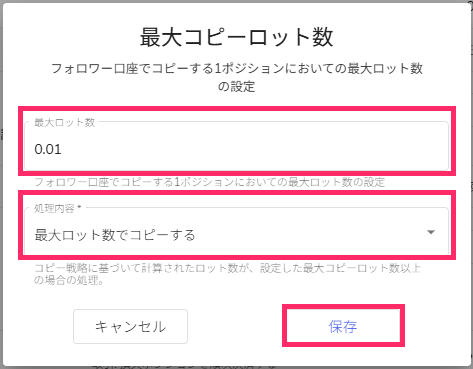 - 最大ロット数:コピーする最大ロット数を入力