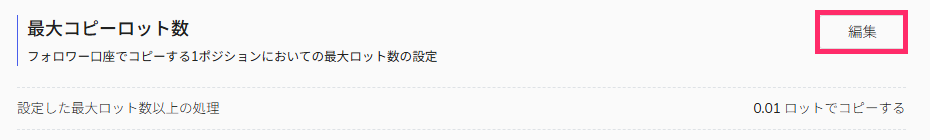 - 最大ロット:プロバイダー口座での取引ロット数が設定値を上回るポジションはコピーされない
