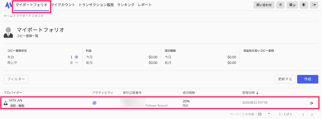 *マイポートフォリオの「ランキングページ」からプロバイダー口座を閲覧・検索・コピーすることが可能です。
