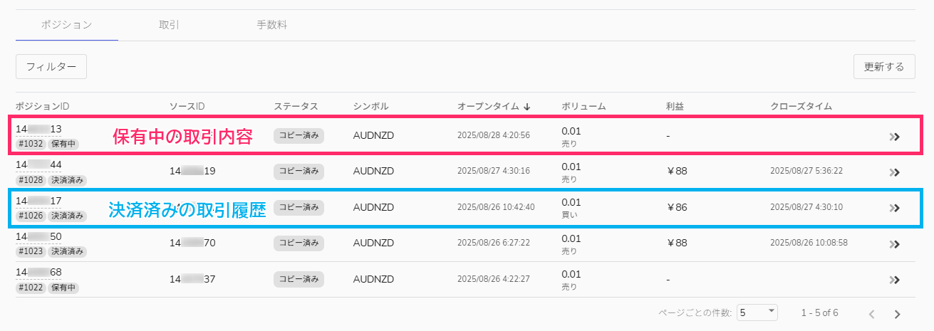 *コピーされた取引はMT4/MT5にて確認・操作が可能です。