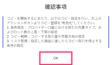 - コピー条件:プロバイダー(トレーダー)が設定しているコピー条件を選択