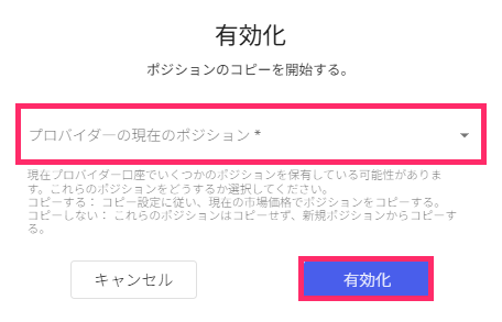 - プロバイダーの現在のポジション:「コピーする」「コピーしない」のいずれかを選択